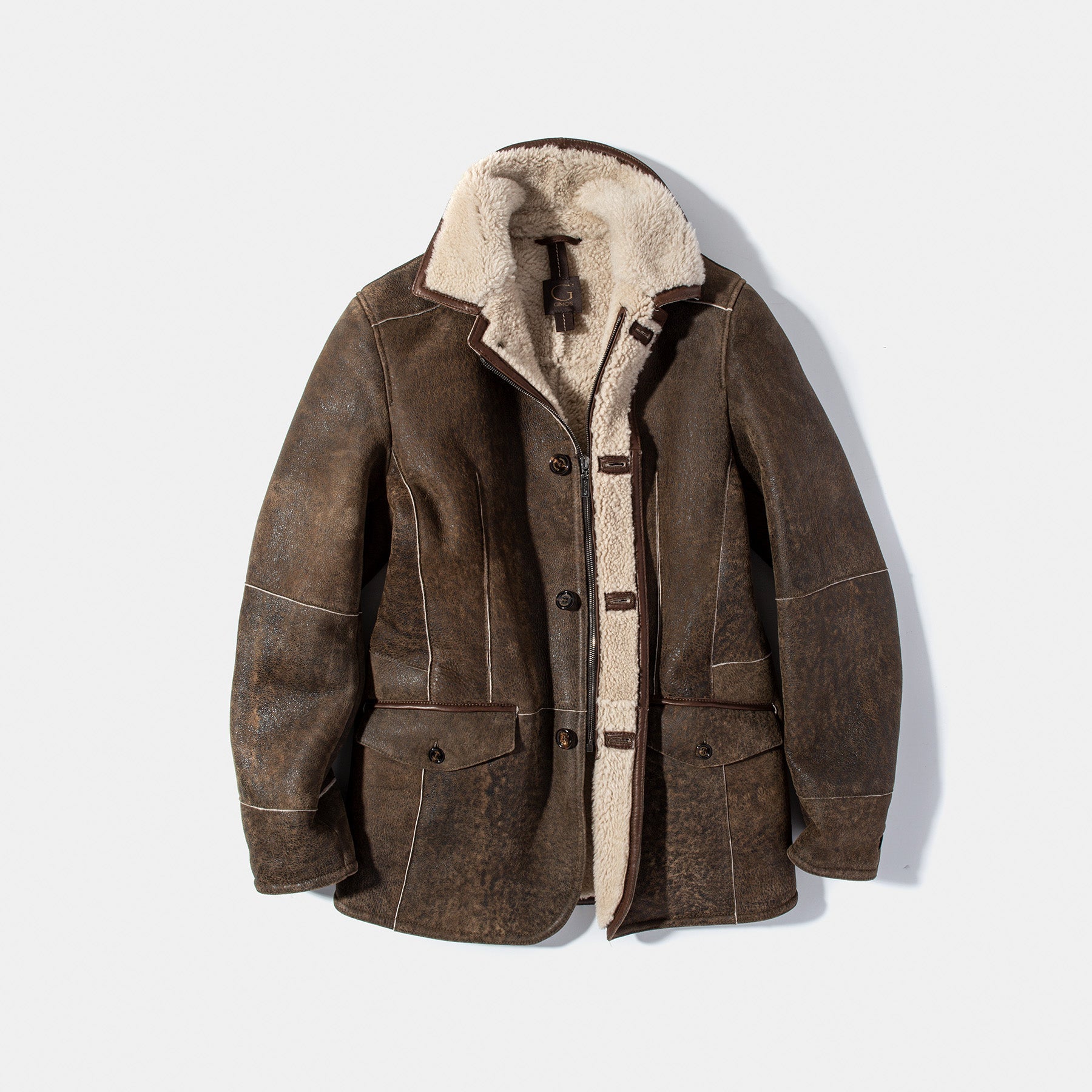 Genuine lamb shearling throughout. Tonal leather trim. Doubled shearling placket at zipper and button front. Increasingly attractive with time and wear (all-weather use encouraged). True to size, trim fit.