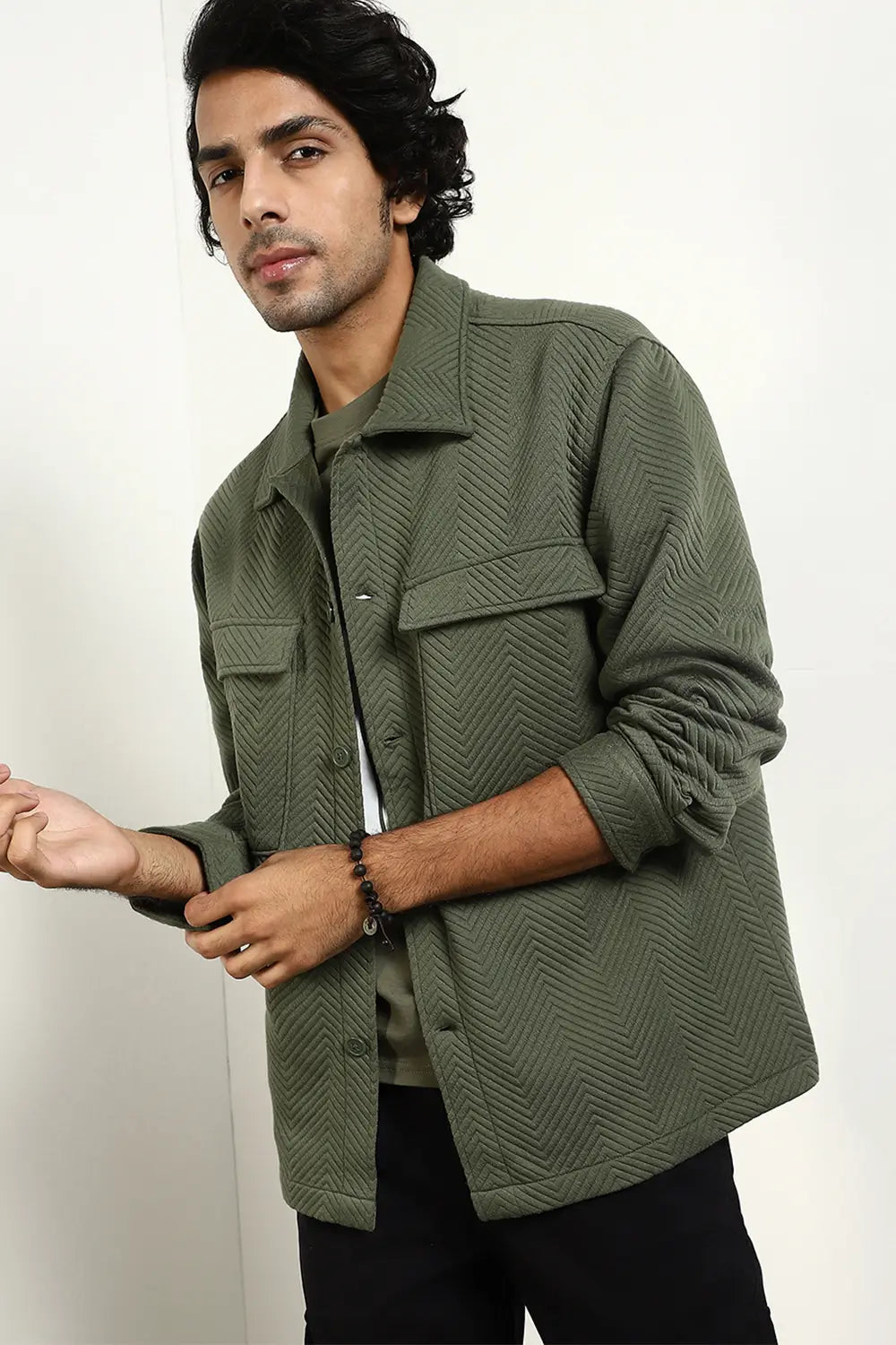 Styling: Complete your winter lookbook by pairing this cozy textured shacket with a trendy Nobero jogger and dainty accessories.