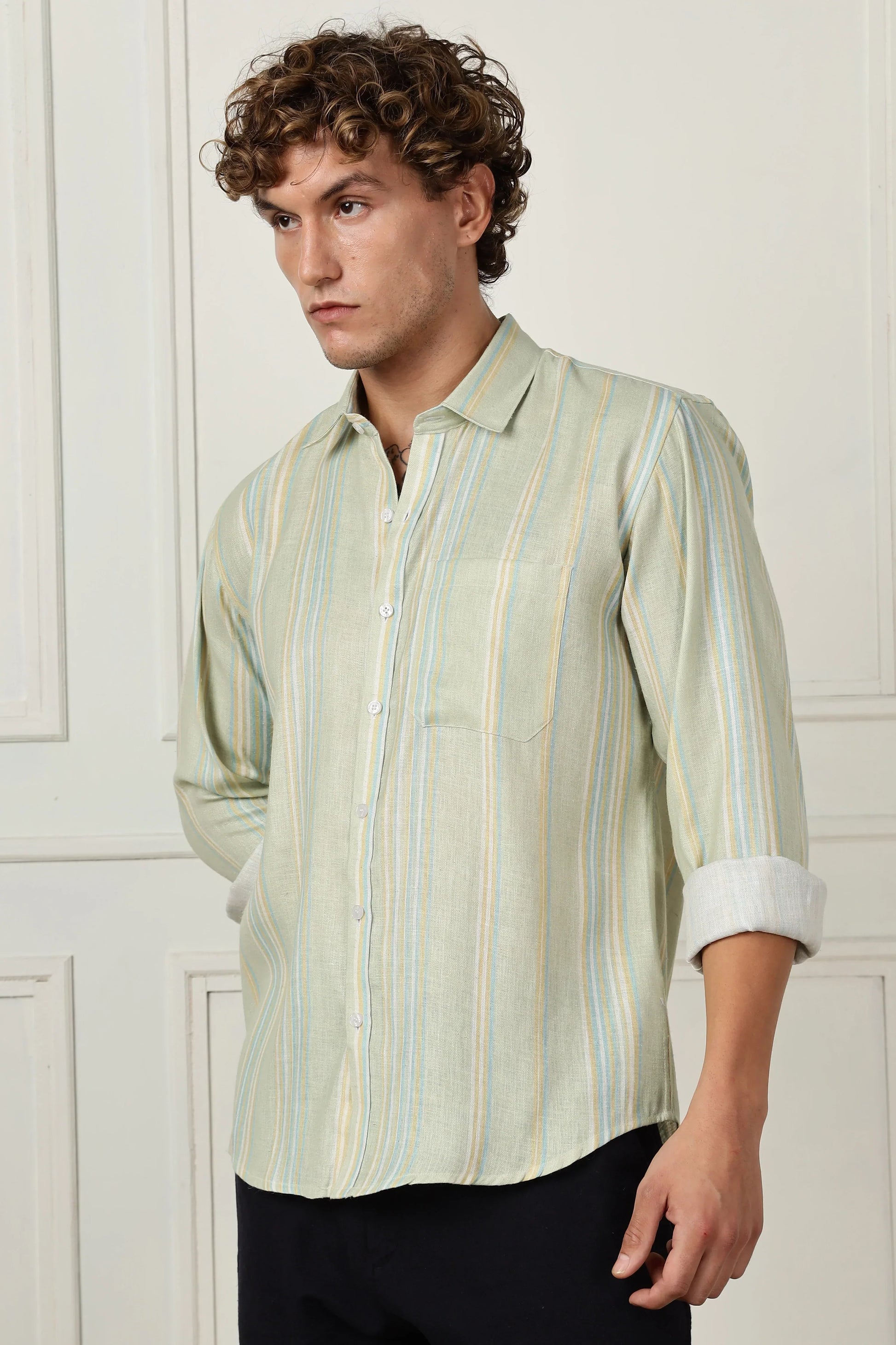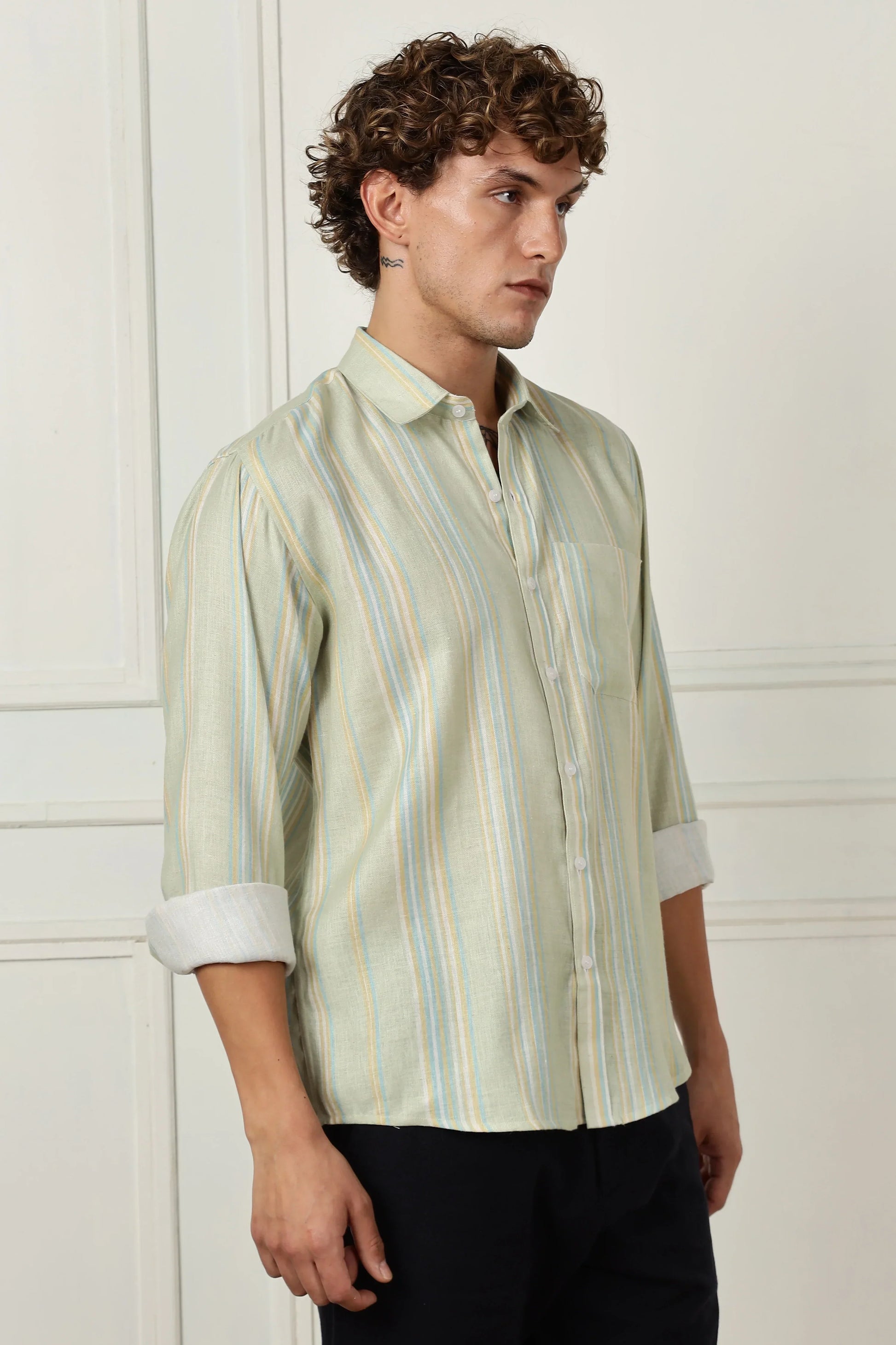 Pista stripe printed full sleeve linen shirt