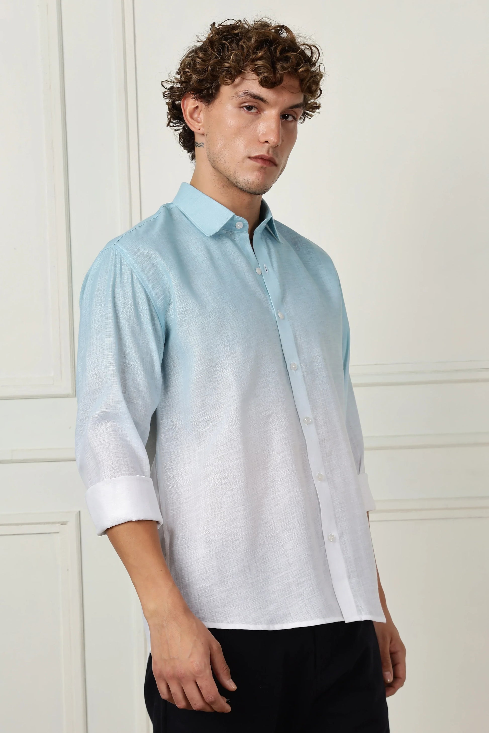 Sky blue ombre full sleeve linen shirt