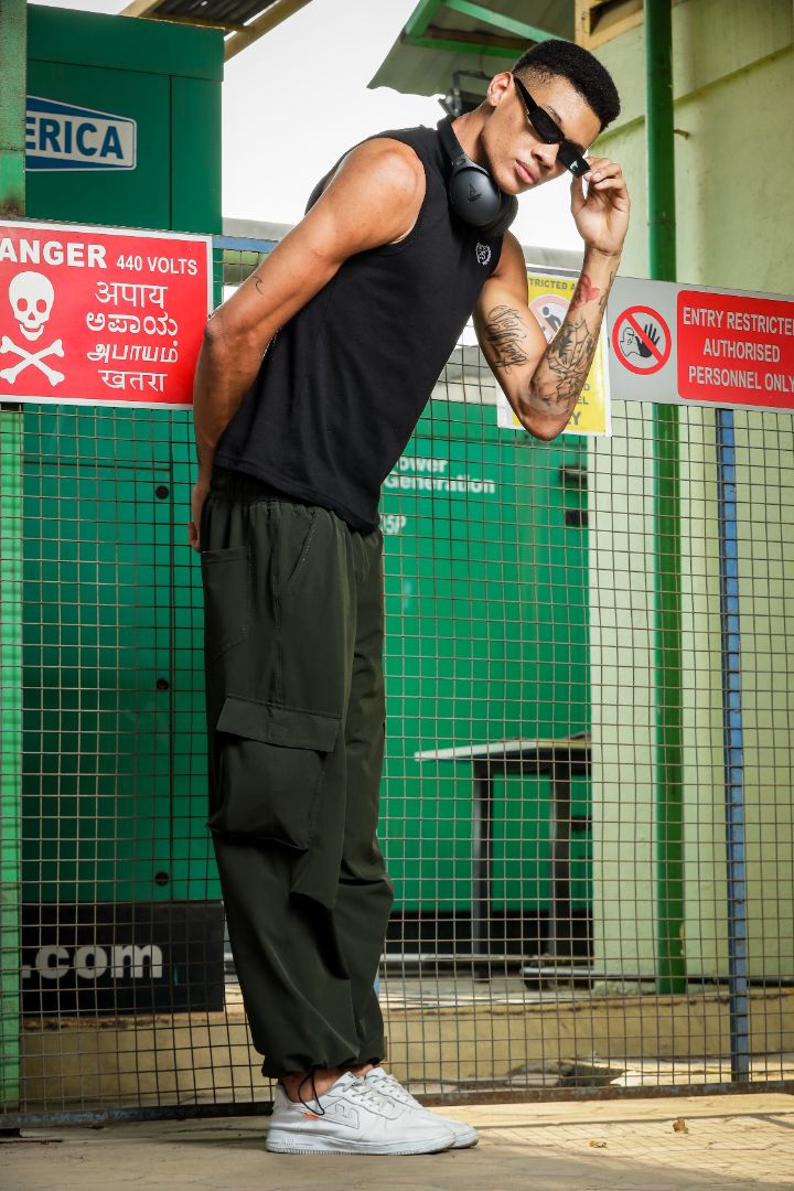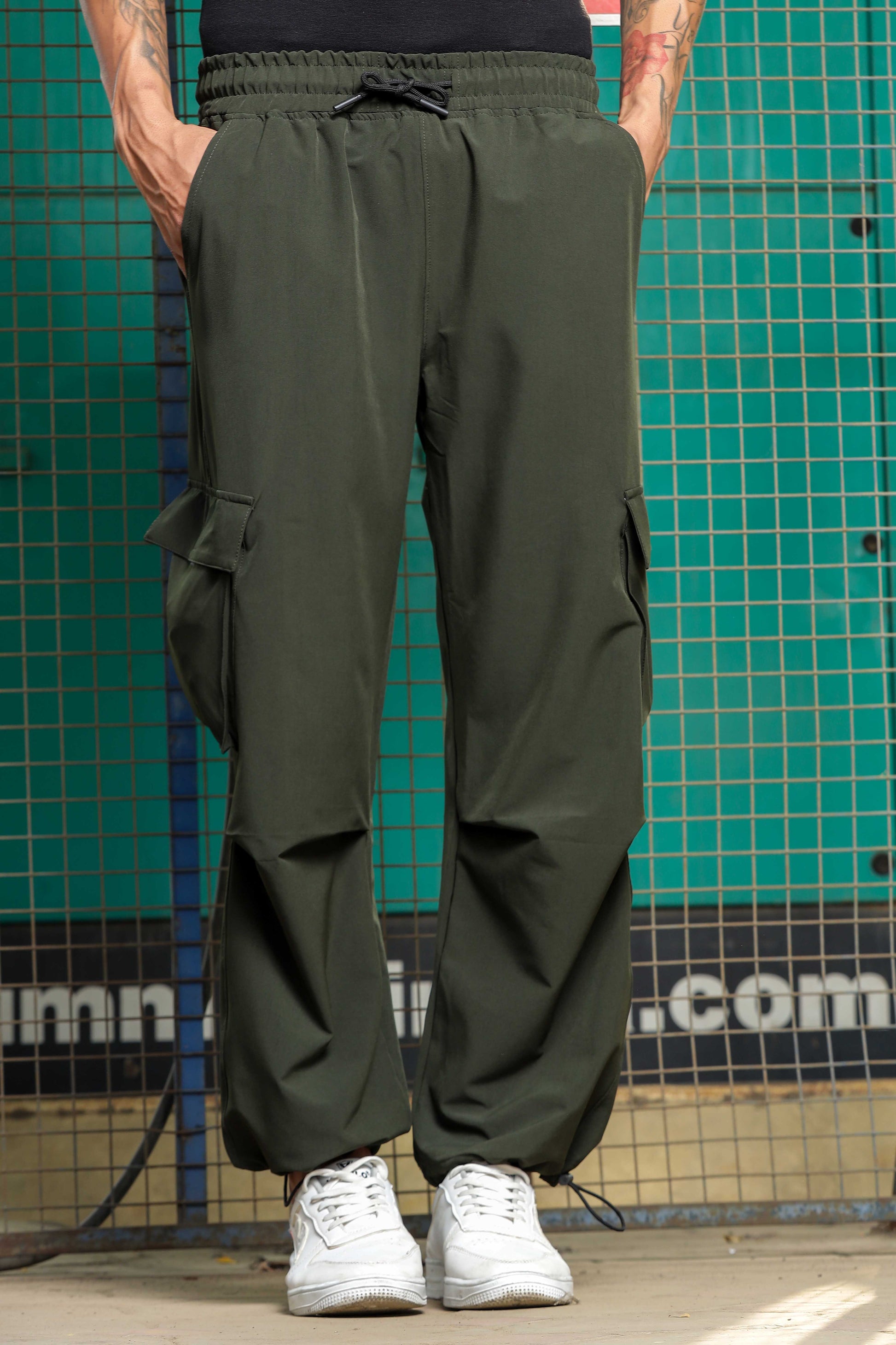 Unisex Baggy Fit Olive Parachute Cargo Trousers