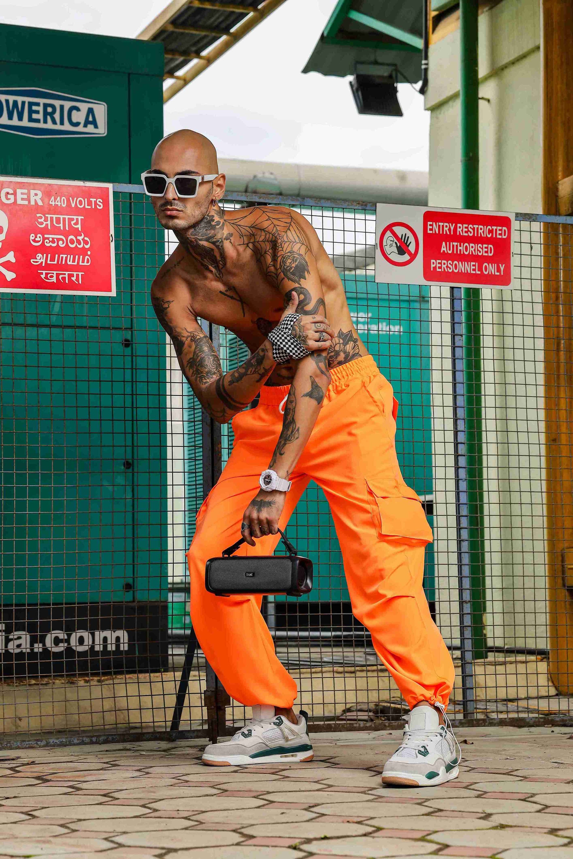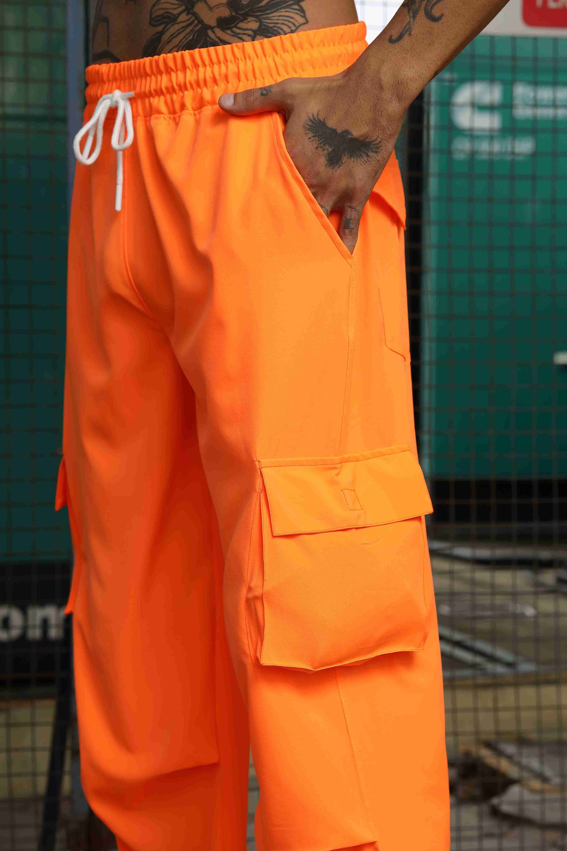 Unisex Baggy Fit Orange Parachute Cargo Trousers