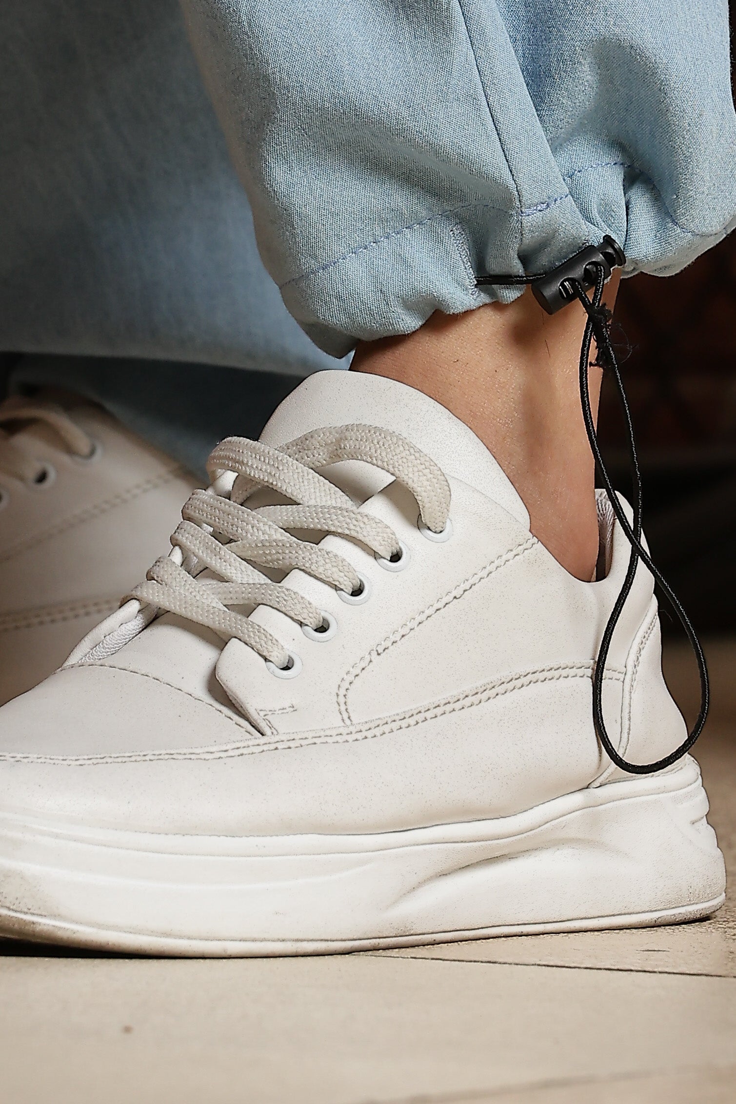 Unisex Light Blue Relaxed Fit Drawstring Denim Parachute Cargo